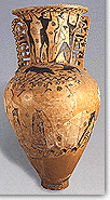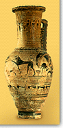 This last phase corresponds to the full prevalence of the black-figure style and is distinguished for the strong Corinthian influences in iconography. The most important potter of that period was the Nessos Painter, who managed to combine technical perfection and the accuracy of the protocorinthian ceramics with the power and the drama of the protoattic one. He painted large craters and amphoras. |