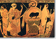 The offer of aparchai -while not abandoned- gradually acquired a second form, when money was offered instead of fruits, but it was still called aparchai. The amount, the kind and the way of the offer were often predefined, in which case it became known as 'tama', votive offering. In the case of an emergency or danger the people promised a specific offering through the formula "if... then...". The weather conditions that would have allowed a good crop were often the object of the invocations and offerings to the gods. Very expensive votive offers were made after military conflicts. Hence, many eminent weapons -especially in the Archaic period- decorate the sanctuaries, since the decate (1/10) of booties was designated for a dedication for the god. The golden tripod on a snake column that was dedicated to Delphi after the victory in Plateae was such a dedication. Even a number of the captives could be dedicated to the sanctuaries. However, the most common votive offerings were objects made especially for this purpose, as for example figurines, vases and statues. These works were accompanied, as a rule, by inscriptions, on which the name of their dedicator and/or artist is mentioned. Thus, one more function of the oblations becomes clear: personal recognition and acknowledgment through the constantly developing social rivalry. | ![]() |