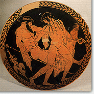 The transition of boys from girl's clothes to nudity also involved a ritual of initiation. Such was the case of Ekdysia in Phaestos and of Gymnopaidiai in Sparta. The same principle is also met in the story of Achilles in Skyros and that of Theseus' arrival in Athens. In Sparta a part of initiation was the celebrated krypteia. During this ritual selected young men were hidden and lived as thieves for a year. The practical importance of the specific venture was to assist the Spartan authority by killing helots without detection. Another cruel ritual of initiation included the whipping of boys at the altar of Artemis Orthia. Its context probably aimed at the definition of the age hierarchy, but in the imperial years ended up as a "tourist attraction". |
