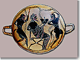 The worship of Dionysus had very ancient roots in Greece. However, during the Archaic period it was introduced into daily life and in art with representations in vase painting and with the compositions initially of the first dithyrambs and later of dramas. Of course, this was the result of the transformation of the old aristocratic Dionysian worship into a popular religion, on the initiative of the tyrants. Groups of raving women, the Maenads or Thyiads, participated in specific festivals, as in Agrionia and in Lenaia. However, besides the official Dionysian festivals private Dionysian mysteries also existed. | ![]() |