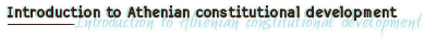 The synoecism, or political unification of the cities of Attica, attributed to Theseus, must already have been completed by the end of the 8th century B.C. According to the atthidographers, the Codrid Acastus resigned from the kingship in favour of the rank of lifelong archon. Tenure for life became tenure for 10 years in the mid-8th century, while the list of archons of Attica, the office now being annual, starts with Creon in 682/1 B.C. Power was traditionally distributed, to start with, among the nine archons (king, eponymous archon, polemarch, and six lawgivers, tenure being for one year) and the Areopagus, in which ex-archons participated for life. The population was divided into four tribes, each bearing the name of a son of Ion (Geleontes, Aegikoreis, Argadeis, Hopletes), and each tribe was in turn divided into three trittyes. It is to Theseus that Plutarch attributes the division of the population into three classes (Eupatrids, Geomoroi, Demiourgoi), of whom only the Eupatrids had civic rights. |