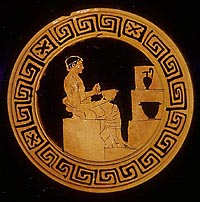 Most workshop owners were not Athenian citizens, as happened with the farming sector, where non-citizens did not have the right to own landed acres, even though they could rent land or do seasonal work as farmers. In the workshops there were probably more metics than citizens. |