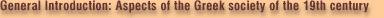 The establishment of the Greek state was accompanied by a series of ruptures which fragmented Greek society. The construction of a modern institutional framework (similar to the Western model) posed de facto the issue of the modernization of society. It was a society split into many relatively autonomous administrative, economical and socio-political centres of power. The unifying and centralizing logic characteristic of the modern state required the application of laws and rules common to the entire state. However, the homogenization of the economical, social and political fields under a strictly centralized state mechanism meant, in the case of Greece, disorganization for local and peripheral centres of power. This prospect affected not only local elites which were traditionally the leaders in Greek society (local notables, chieftains, clergymen); it actually put the main axes of social organization (local character, family ties, religion) to the test. The prevalence of the modern institutional framework which accompanied political independence was much resisted, especially in rural areas. Banditry and local armed revolts, as well as the emergence of a debate which preceived in these changes the decline of traditional values, constituted different versions of the resistance of an important (as regards numbers and social status) part of Greek society. In other words, the social tension prevailing over the biggest part of the 19th century constituted a way of expressing distrust in change. This reaction was one of the basic characteristics of Greek society in the 19th century. At the same time, social tensions showing the extent and importance of change were particularly felt in urban centres. If rural areas were a source of mistrust and resistance to every innovation, the cities and the capital in particular generally reflected individual instances of breaking with the past. The formation of an administrative mechanism led to the gradual shaping of a social group which was new and at the same time composed of many people: the civil servants. The development of the secondary and tertiary sectors of production and the gradual prevalence of salaried work caused the middle classes to grow in number, and created the conditions for the formation of working classes. These new social categories believed in new values (among which was literacy), and in their daily life they adopted different (Western-like) models in clothing, housing, nutrition, hygiene, music, entertainment and social events. It was certainly a different kind of Greek society. In short, the Greek society of the 19th century experienced a fundamental paradox which could schematically be described as the co-existence of the old and the new, traditional and modern. This paradox existed throughout the whole of society, (re)shaped it and consequently constituted its basic feature. In the light of this, the mistrust and resistance on the part of traditional groups and rural areas in general did not suggest the persistence of the old, but one of the ways of adjusting to the new.