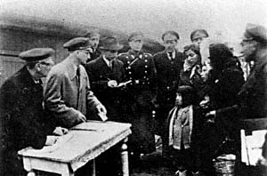 Από το Φεβρουάριο του 1943, όλοι οι Εβραίοι υποχρεωθήκαμε να φοράμε κίτρινο άστρο. Και από τις αρχές Μαρτίου μας απαγόρευσαν να βγαίνουμε από τα γκέτο, δηλαδή ορισμένες συνοικίες όπου μας ανάγκασαν να περιοριστούμε. [...] Στο μεταξύ, από τις 15 Μαρτίου 1943, είχαν αρχίσει να φεύγουν οι αποστολές των Εβραίων της Θεσσαλονίκης στην Πολωνία. Φυσικά δεν υποψιαζόμασταν τι μας περίμενε. [....] Mας στοίβαξαν σε βαγόνι για ζώα, 80 άτομα σε κάθε βαγόνι, μ' ένα βαρέλι για τις σωματικές μας ανάγκες κι ελάχιστα τρόφιμα. H διαδρομή κράτησε οχτώ μέρες. Πολλοί γέροι κι άρρωστοι πέθαναν στο ταξίδι. Φτάσαμε στο ’ουσβιτς-Μπιρκενάου. [...] Mας φόρεσαν κάτι ριγωτές στολές και μας χάραξαν με τατουάζ έναν αριθμό στο αριστερό μας χέρι. Ο δικός μου αριθμός είναι ο "111.383". Mας κράτησαν δέκα μέρες καραντίνα. Ρωτήσαμε τους κάπο, που ήταν Πολωνοί ή Γερμανοί ποινικοί κατάδικοι, πότε θα ανταμώσουμε τους δικούς μας. Αυτοί γελούσαν ειρωνικά, μας έδειχναν τα κρεματόρια με τα ψηλά φουγάρα που έβγαζαν συνέχεια καπνό και μας έλεγαν: "Εκεί είναι οι συγγενείς σας". [...] ’ρχισαν να μας βάζουν σε σκληρές δουλειές. Κουβαλούσαμε βαγόνια με χώματα, σπάγαμε πέτρες, ανοίγαμε δρόμους. Η τροφή ελάχιστη. Έτσι σε μια βδομάδα ήσουν πια έτοιμος για το φούρνο, γιατί συχνά, ιδιαίτερα όταν έφταναν καινούργιες αποστολές, έκαναν διαλογές κι εξόντωναν τους παλιότερους κατάδικους που είχαν εξαντληθεί από τις βαριές δουλειές. Σε μια απ' αυτές τις νέες αποστολές, που έφταναν συνέχεια, είδα μια μάνα να κρατά ένα μωρό στην αγκαλιά και να σέρνει απ' το χέρι ένα άλλο μεγαλύτερο παιδί που ρωτούσε: "Μαμά, πού θα μας πάνε;" Κι εκείνη απάντησε: "Πρώτα θα κάνουμε μπάνιο κι ύστερα θα συναντήσουμε το μπαμπά, τον παππού, τη γιαγιά και τους άλλους". [...]