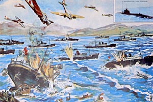 Παράλληλα προς το στρατό ξηράς, σφοδρούς αγώνες στη θάλασσα έδινε κι ο ελληνικός στόλος, προστατεύοντας τις ελληνικές μεταφορές και παρεμποδίζοντας τις ιταλικές, όπως και προφυλάσσοντας τις ακτές από εχθρικές αποβάσεις και βομβαρδισμούς. Ο ελληνικός στόλος πέτυχε εξαιρετικές νίκες επί των Ιταλών, συμβολική υπόμνηση των οποίων παρέμεινε η δράση του υποβρυχίου "Παπανικολής" και του πλωτάρχη του, Μίλτωνα Ιατρίδη. Επίσης, η ελληνική αεροπορία, αν και στοιχειωδώς εξοπλισμένη, έδωσε το δικό της αγώνα στην αναχαίτιση των εντυπωσιακά υπέρτερων ιταλικών αεροπορικών δυνάμεων.