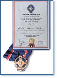 προσφορά του. Tο μετάλλιο απένειμε στον Πρόεδρο του Iδρύματος κ. Λάζαρο