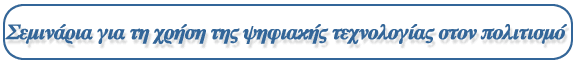 Μετά την επιτυχία του συνεδρίου «Πολιτισμική Σύγκλιση και Ψηφιακή Τεχνολογία», που διοργανώθηκε το Μάιο του 2003, και το συνεχές ενδιαφέρον του κοινού που το παρακολούθησε, το Ίδρυμα Μείζονος Ελληνισμού αποφάσισε τη διοργάνωση ενός κύκλου σεμιναρίων με παρεμφερές περιεχόμενο. Τίτλος του κύκλου σεμιναρίων είναι «Η Xρήση της Ψηφιακής Τεχνολογίας στην Aνάδειξη της Πολιτισμικής Πληροφορίας» και στόχος του η διαχείριση έργων πολιτιστικού περιεχόμενου, χρησιμοποιώντας αποκλειστικά νέες ψηφιακές τεχνολογίες, όπως είναι το Διαδίκτυο, τα τρισδιάστατα γραφικά και η Εικονική Πραγματικότητα, τα γεωγραφικά συστήματα πληροφοριών, τα πολυμέσα κτλ. Τα σεμινάρια απευθύνονται σε μεγάλο εύρος κοινού, από την εκπαιδευτική και ερευνητική κοινότητα αλλά και από ποικίλους επαγγελματικούς χώρους, όπως η πληροφορική, η μουσειολογία, τα μέσα επικοινωνίας, η ιστορία και η αρχαιολογία, οι τέχνες, η αρχιτεκτονική κτλ. Η μακρόχρονη παρουσία του Ιδρύματος Μείζονος Ελληνισμού στον τομέα αυτό, καθώς και η μεταπτυχιακή εξειδίκευση και επαγγελματική και εκπαιδευτική εμπειρία των εισηγητών, προσδίδουν ιδιαίτερη βαρύτητα στη διοργάνωση αυτών των σεμιναρίων. Oι εισηγήσεις θα αρχίσουν το Φεβρουάριο του 2004 και θα γίνονται κατά κύριο λόγο στους χώρους του Πολιτιστικού Κέντρου «Eλληνικός Kόσμος». Θα διαρκέσουν 12 εβδομάδες και θα πραγματοποιούνται 3 έως 4 ώρες κάθε εβδομάδα.