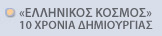 Ο «Ελληνικός Κόσμος», το Πολιτιστικό Κέντρο του Ιδρύματος Μείζονος Ελληνισμού, συμπληρώνει φέτος δέκα χρόνια λειτουργίας, δημιουργίας και προσφοράς στον ελληνικό πολιτισμό