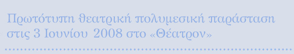 Η μεγάλη επιτυχία της παράστασης που δόθηκε στις 20 και 21 Μαρτίου 2008 στο «Θέατρον» για τα δέκα χρόνια του «Ελληνικού Κόσμου» ήταν η αφορμή για να στηθεί εκ νέου στις 3 Ιουνίου στον ίδιο χώρο. Το θεατρικό δρώμενο, με τη συμμετοχή σαράντα συντελεστών και τη σκηνοθετική υπογραφή του Γιάννη Κακλέα, απεικόνιζε τα οράμaτα, τους στόχους και τη διαδρομή του Κέντρου Πολιτισμού. Η ηθοποιός Καρυοφυλλιά Καραμπέτη παρουσίασε το «Θέατρον» ως πρόταση στο πολιτιστικό γίγνεσθαι της πόλης και η Τάνια Τσανακλίδου συνόδευσε την παράσταση με την ερμηνεία γνωστών τραγουδιών της. Παράλληλα, ο Διευθύνων Σύμβουλος του ΙΜΕ κ. Δημήτρης Εφραίμογλου, ως οικοδεσπότης της βραδιάς, ξενάγησε τους καλεσμένους στην ιστορία του «Ελληνικού Κόσμου».