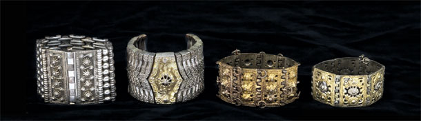 Τα εκθέματα προέρχονται κυρίως από περιοχές της Ελλάδας με διάδοση στα Βαλκάνια, καθώς και από άλλες χώρες (Ινδία, Θιβέτ, Πακιστάν κτλ.) και εκτός από την αισθητική αξία του κοσμήματος αναδεικνύουν και την κοινωνική και ιστορική του διάσταση. Ταυτόχρονα, η έκθεση παρακολουθεί την έρευνα της συλλέκτριας σε παλαιοπωλεία της Ελλάδας και του εξωτερικού κατά τα χρόνια συλλογής των πολύτιμων αντικειμένων. Η ανακάλυψη των βραχιολιών οδηγεί στην ανίχνευση των ιστοριών που κρύβουν. Η γνώση των ιστοριών στη διερεύνηση της ζωής των κατόχων. Μέσα από αυτή τη διαδικασία, η αλυσίδα της συλλογής σπάει και οι κρίκοι-βραχιόλια γίνονται κρίκοι μιας άλλης αλυσίδας, που εξιστορεί τις ζωές των ανθρώπων που τα κατασκεύασαν, τα αγόρασαν, τα χάρισαν, τα αποδέχτηκαν και τα φόρεσαν. Με τον τρόπο αυτό, το βραχιόλι, ως αντικείμενο της τέχνης των χρυσικών, αποτελεί το ένα τμήμα της έκθεσης. Ακολουθεί η ζωή του αντικειμένου δίπλα στον κάτοχό του. Όπως χαρακτηριστικά αναφέρει η κυρία Κορρέ στην εισαγωγή της ομώνυμης με την έκθεση έκδοσης: «...Συνειδητοποίησα ότι τα ίδια εκπροσωπούσαν, συγχρόνως, πέρα από την αισθητική τους αξία, την κοινωνική διαστρωμάτωση, ενώ παράλληλα αποτελούσαν δείκτες οικονομικής ευμάρειας των κατόχων τους, με ανταλλακτική πολλές φορές χρήση...».