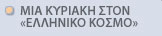 O «Ελληνικός Κόσμος» γίνεται τόπος συνάντησης μικρών και μεγάλων τα πρωινά της Κυριακής. Γονείς με παιδάκια, από την ηλικία των νηπίων ακόμη, έχουν τη δυνατότητα να περάσουν πολύ ευχάριστα και εποικοδομητικά το χρόνο τους παρακολουθώντας ποικίλες δραστηριότητες.