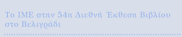 Το Ίδρυμα Μείζονος Ελληνισμού συμμετείχε στην 54η Διεθνή Έκθεση Βιβλίου στο Βελιγράδι, στο οποίο η Ελλάδα ήταν η τιμώμενη χώρα. Η έκθεση διήρκεσε από τις 26 Οκτωβρίου έως την 1η Νοεμβρίου 2009. Σε ειδικά διαμορφωμένο χώρο, στο περίπτερο του Εθνικού Κέντρου Βιβλίου (ΕΚΕΒΙ), το ΙΜΕ παρουσίασε το εκδοτικό του έργο, ενώ στο χώρο προβολής των νέων τεχνολογιών εγκαταστάθηκε ο «Εικονικός Κινηματογράφος», με τις παραγωγές «Περιήγηση στην Αρχαία Μίλητο» και «Διαδραστική Περιήγηση στην Αρχαία Αγορά». Την έκθεση επισκέφθηκε ο πρέσβης της Ελλάδας στη Σερβία κ. Δημοσθένης Ζωίδης με το επιτελείο της πρεσβείας, Σέρβοι τεχνολόγοι και σχολεία του Βελιγραδίου. Το ΙΜΕ, με όραμα την προαγωγή του πολιτισμού μέσω των νέων τεχνολογιών, δίνει έμφαση στην ανάπτυξη συνεργασιών με φορείς του εξωτερικού. Ήδη προς την κατεύθυνση αυτή συνεργάζεται με την Shanghai Association for Science and Technology για σειρά συμπαραγωγών και με το Media Education Centre της Σερβίας για την ανάδειξη του πολιτισμικού πλούτου των Βαλκανίων.