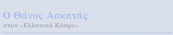 Με μεγάλη επιτυχία ολοκληρώθηκε στις 14 Απριλίου 2010 ο κύκλος διαλέξεων «Ο Ελληνικός Κόσμος συναντά...», με ομιλητή το Δρ. Θάνο Ασκητή και θέμα: «Παιδική και εφηβική σεξουαλικότητα». Για δύο ώρες περίπου ο κ. Ασκητής κράτησε αμείωτο το ενδιαφέρον του κοινού, το οποίο ανταποκρίθηκε με πλήθος ερωτήσεων που απασχολούν σήμερα τους γονείς. Οι διαλέξεις θα συνεχιστούν το χειμώνα του 2010 με νέα και ενδιαφέροντα θέματα και περισσότερους προσκεκλημένους ομιλητές.