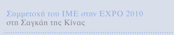 Το Ίδρυμα Μείζονος Ελληνισμού (ΙΜΕ) συμμετείχε στην EXPO 2010 στη Σαγκάη, η οποία είχε θέμα «Καλύτερη πόλη, καλύτερη ζωή», αντιπροσωπεύοντας την κοινή ευχή όλης της ανθρωπότητας για καλύτερο βιοτικό επίπεδο στο αστικό τοπίο του μέλλοντος.